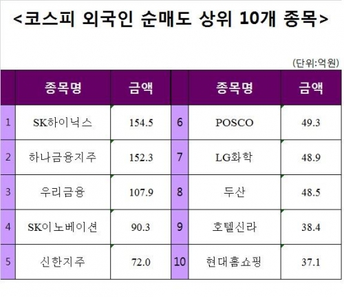 [코스피 외국인 순매도 상위 10개 종목]