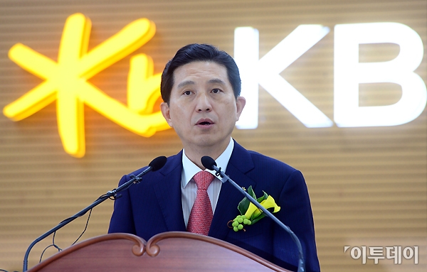 임영록 KB금융그룹 회장이 12일 오전 여의도 KB국민은행 본점에서 열린 취임식에서 취임사를 하고 있다. 노진환 기자 myfixer@