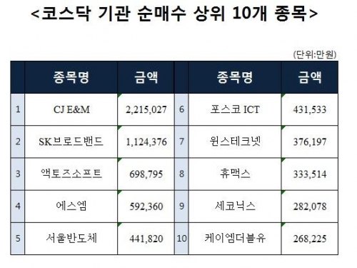 [주간 코스닥 기관 순매수 상위 10개 종목]