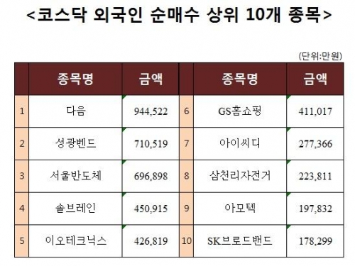 [주간 코스닥 외국인 순매수 상위 10개 종목]