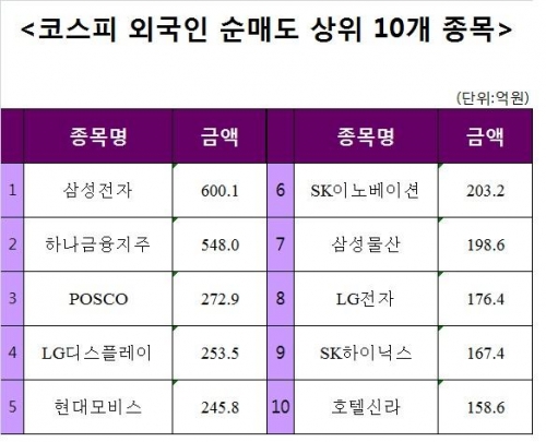 [주간 코스피 외국인 순매도 상위 10개 종목]