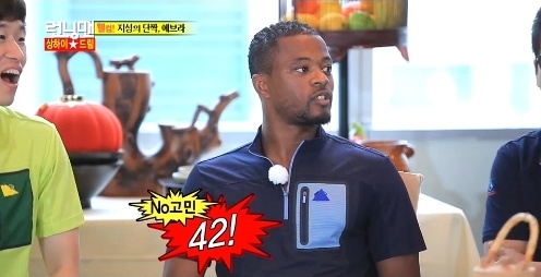 파트리스 에브라는 14일 SBS '일요일이 좋다-런닝맨'에 등장해 자선 축구 경기 전 멤버들과 게임을 했다.