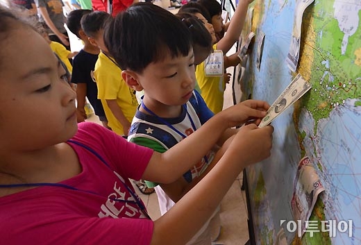 15일 서울 서초구청에서 열린 제4회 세계화폐전시회를 찾은 어린이들이 세계 각국의 다양한 화폐를 관람하고 있다.양지웅 기자 yangdoo@