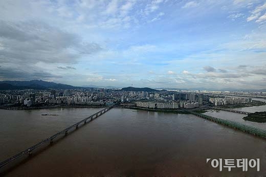 집중호우가 잠시 소강상태를 보인 15일 오후 서울 여의도 63빌딩에서 바라본 하늘이 비구름이 걷히며 맑은 하늘을 보이고 있다. 방인권 기자 bink7119@