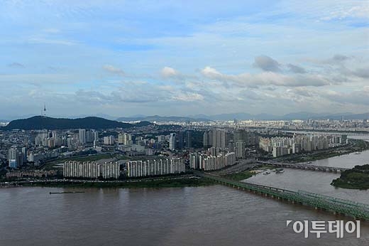 집중호우가 잠시 소강상태를 보인 15일 오후 서울 여의도 63빌딩에서 바라본 하늘이 비구름이 걷히며 맑은 하늘을 보이고 있다. 방인권 기자 bink7119@
