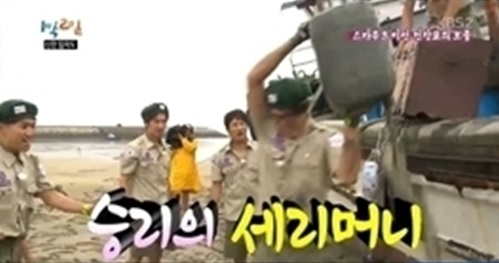전라남도 신안군 임자도에서 펼쳐진 스카우트 캠프에서 멤버들은 아빠팀(이수근 차태현 엄태웅)과 오빠팀(성시경 김종민 주원)으로 나뉘어 스카우트 미션을 수행했다. 각 팀이 통 하나에 물을 채워야 하는 미션.