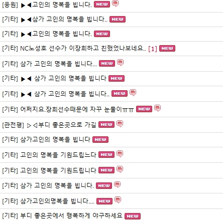 “삼가 고인의 명복을 빕니다”, “이장희 선수의 명복을 빕니다”, “부디 좋은 곳에서 행복하게 야구하세요”, “장희 선수 때문에 자꾸 눈물이”라는 글이다.