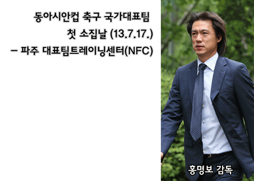 2013 동아시안컵 출전을 앞둔 축구 국가대표팀 선수들이 17일 오전 경기도 파주 국가대표트레이닝센터(NFC)에 소집됐다. 새롭게 출항하는 홍명보 감독과 선수들은 홍감독의 특별지시에 따라 이날 정장차림으로 정문에서부터 숙소까지 걸어들어왔다. 달라진 복장만큼 어쩐지 더 당당하고 멋있어 보이는 국가대표들의 모습을 포토슬라이드로 구성했다.