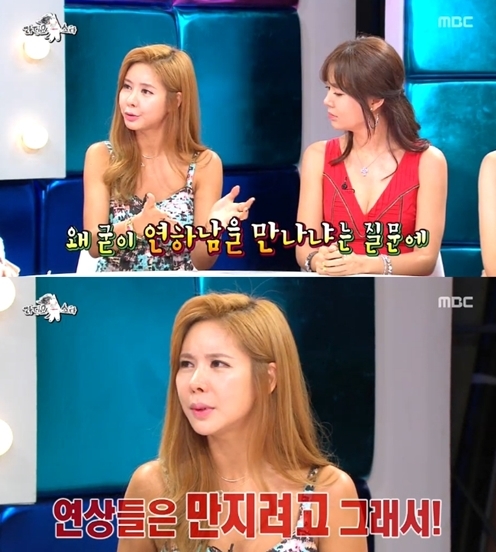 연하남을 고집하는 이유에 대해 “연상들은 만지려고 그러고 스킨십이 너무 자연스럽다”고 밝혔다.