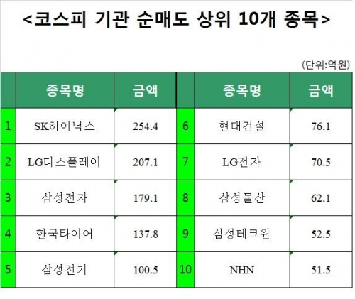 [코스피 기관 순매도 상위 10개 종목]