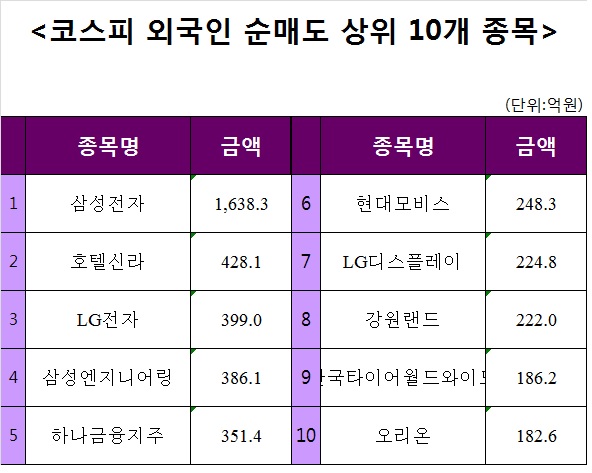 #주간코스피외국인순매도상위10