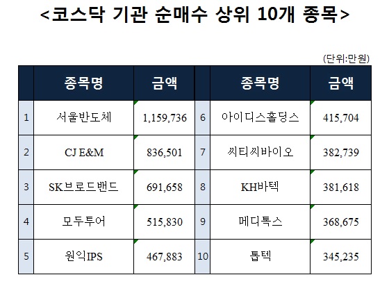 [주간 코스닥 기관 순매수 상위 10개 종목]