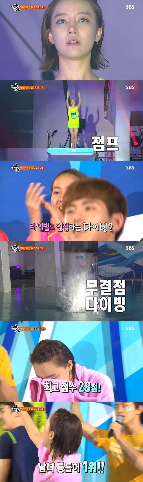 걸그룹 레인보우 멤버 고우리가 무결점 다이빙에 성공했다.