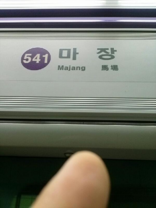 사진은 지하철 5호선 마장역 이정표를 찍은 것으로 ‘마장’의 발음이 긍정의 뜻인 ‘맞아’와 비슷한 어감을 가지고 있는 것을 우습게 표현한 것이다.