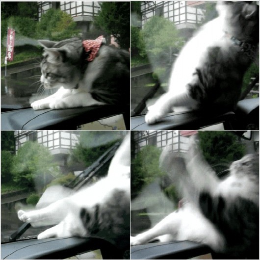 와이퍼와 싸우는 고양이가 화제다.