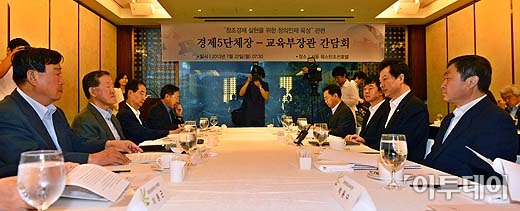 서남수 교육부 장관이 22일 오전 서울 중구 웨스틴 조선호텔에서 열린 ‘창조경제 실현을 위한 창의인재 육성 관련 경제 5단체장-교육부장관 간담회에서 모두 발언을 하고 있다. 방인권 기자 bink7119@