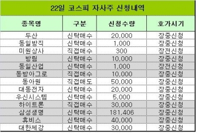 22일 자사주 신청내역