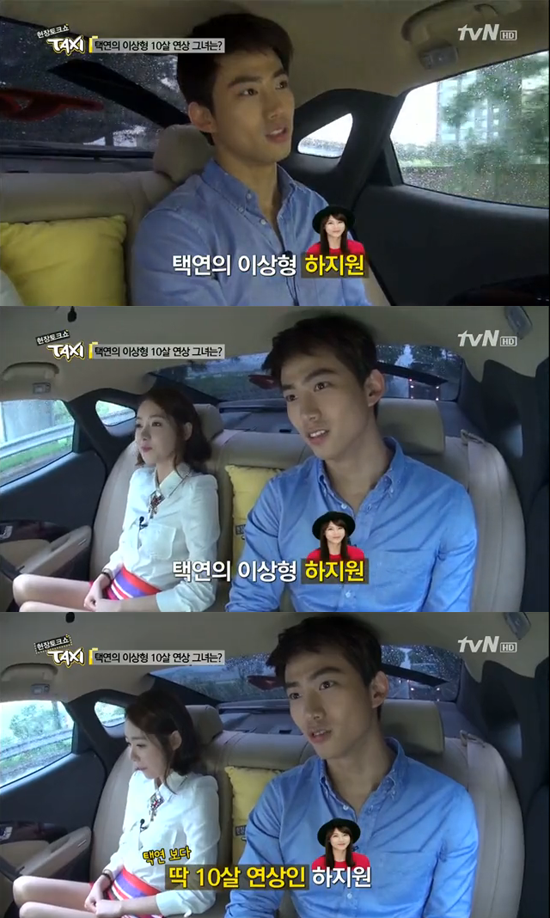 아이돌 그룹 2PM 멤버 택연이 배우 하지원을 이상형으로 지목했다.