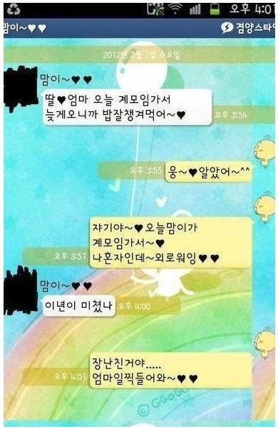 그러나 딸은 2분 후 “쟈기야~ ♥ 오늘 맘이가 계모임가서~♥ 나 혼자인데~ 외로워잉♥♥”이라는 카톡을 엄마에게 보낸다.