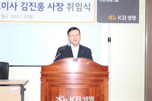 김진홍 KB생명 신임 사장이 중견 생명보험사를 넘어 업계 상위권으로 도약하겠다고 천명했다.