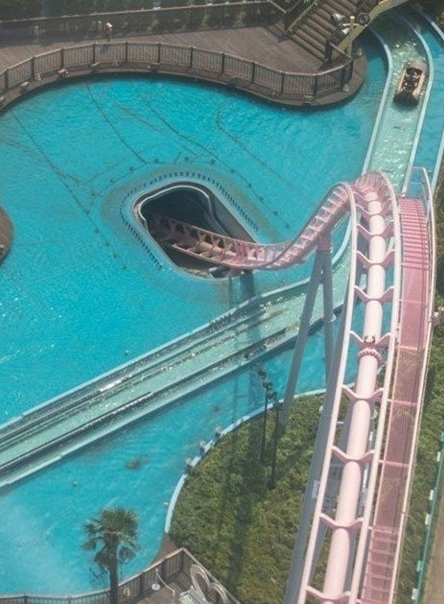 사진 속 롤러코스터는 일본 요코하마 코스모월드에 있는 ‘바닛슈(vanish)’다. 바닛슈는 수직에 가까운 속도로 하강하며 물 사이 동굴로 통과해 마치 물 속에 빠지는 느낌을 주는 롤러코스터로 유명하다.