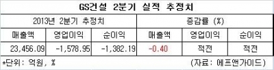 1분기 ‘어닝쇼크’로 시장에 충격을 안겨줬던 GS건설의 2분기 실적발표가 하루 앞으로 다가왔다. 전문가들은 수주 부진으로 인해 2분기에도 적자에서 벗어나기는 힘들 것으로 보고 있다.