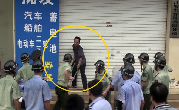 중국에서 넷째 자녀의 호적 등록을 거부당한 남성이 관공서에서 흉기를 휘둘러 6명의 사상자가 발생했다. 지난 23일 좡족자치구 둥싱시에서 한 남성이 둥싱시 가족계획국 사무실에 난입한 뒤 흉기를 휘둘러 직원 2명은 사망하고 4명은 크게 다쳤다고 24일 광시성 당국이 밝혔다. 용의자는 사회보장비용을 내지않아 가족계획국이 자신의 네번째 아이에 대해 호적등록을 해주지 않자 이같은 범행을 저지른 것으로 드러났다. 사진은 둥싱시 관공서 밖에서 흉기를 휘두른 남성이 출동한 경찰들과 대치중인 모습.