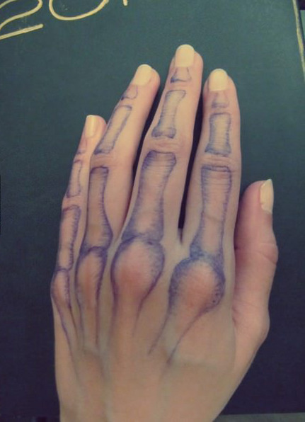 공개된 '속 보이는 손' 사진은 사람의 손등에 펜으로 뼈 관절을 그려 넣은 모습이 담겨 있다. 얼핏보면 엑스레이를 촬영한 것으로 보일 정도로 정교하게 표현한 게시자의 솜씨가 돋보인다.