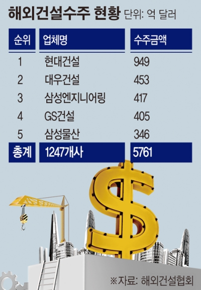 또 해외에 진출한 1247기업들(하청업체 324개사 포함)의 해외건설 수주총액은 5761억 달러로 집계됐다.