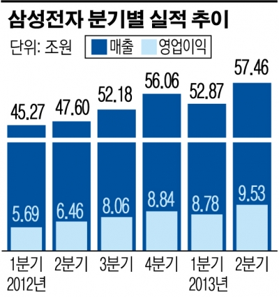 26일 삼성전자는 2분기 실적발표를 통해 매출 57조4600억원, 영업이익 9조5300억원, 당기순이익은 7조7738억원을 기록했다고 밝혔다.