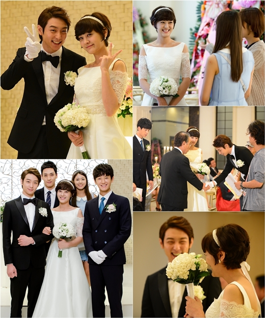 이날 공개된 사진에는 턱시도를 입은 현우와 웨딩드레스 차림의 강별의 아름다운 자태가 담겨있다. 두 사람은 카메라를 향해 ‘V자’ 포즈를 취하거나 서로를 바라보며 웃음이 터트리는 등 행복한 분위기를 연출했다. 이밖에도 결혼식 현장에서 무게중심을 잡는 이순재의 모습과 현우-강별 커플과 임주환, 최태준, 설현의 가족사진도 함께 공개돼 훈훈한 촬영현장 분위기를 그대로 전했다.