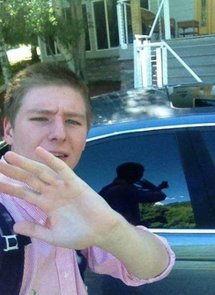 하지만 사진 뒷 배경의 자동차 유리에는 남성이 셀프카메라를 찍는 모습이 반사돼 사진이 조작됐음을 알 수 있다.