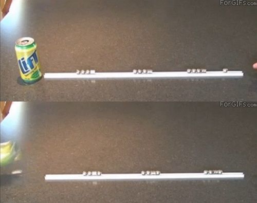 공개된 '자석 총알' 영상에는 여러 개의 자석이 일렬로 놓여져 있다. 자석 앞에는 음료수 캔이 서있다. 잠시 뒤 극이 다른 자석을 내려놓자 극성으로 인해 자석이 날라가 음료수 캔을 쓰러뜨린다. 강한 자력을 보여주는 이 영상에 네티즌들이 눈