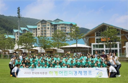 한국투자증권은 지난 24일부터 1박2일 일정으로 경기도 곤지암리조트에서 여름 방학을 맞은 초등학교 4~6학년 학생 70명을 초청해 ‘ 2013 하계 어린이 경제캠프’를 진행했다고 29일 밝혔다.