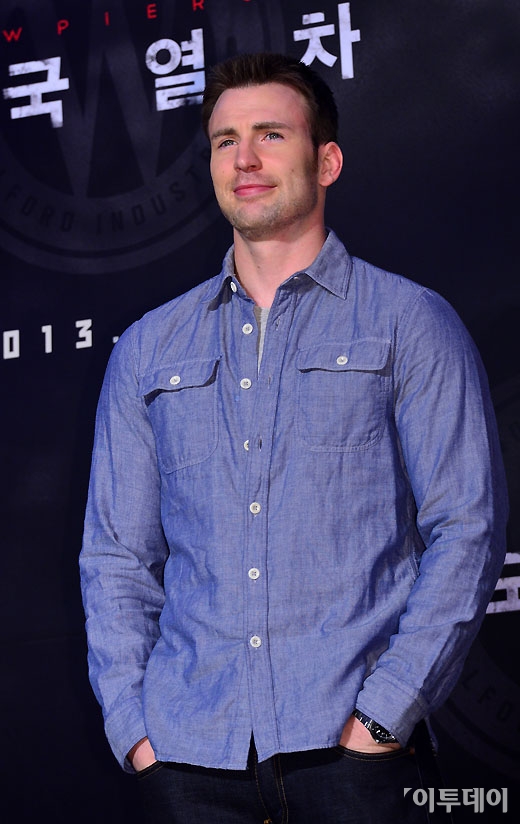 영화 '설국열차' 기자회견이 29일 서울 여의도 콘래드 호텔에서 열렸다. 이날 기자회견에 참석한 배우 크리스 에반스가 포즈를 취하고 있다. 양지웅 기자 yangdoo@