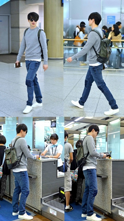 그는 활동성 좋은 회색 맨투맨 티셔츠와 블루 데님팬츠를 입고, 운동화는 흰색 스니커즈를 매치해 깔끔함을 더했다. 이와 함께 가죽 백팩과 블랙 선글라스 등 패션 소품도 시선을 끌었다.
