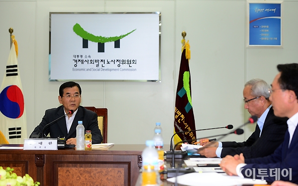 김대환 노사정위원장이 29일 오전 서울 여의도 노사정위원회 대회의실에서 열린 제82차 본회의에 참석해 모두발언을 하고 있다. 노진환 기자 myfixer@