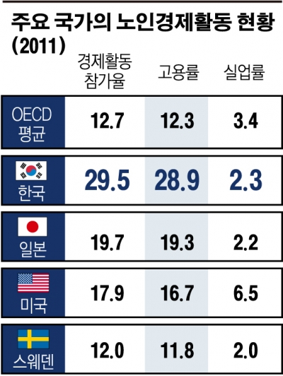 한국은 고령화가 심화되고 있지만 노인빈곤률이 45.1%로 OECD 국가 중 제일 높다. 하지만 노인일자리 공급은 턱없이 부족하고 일자리의 질이 떨어진다는 비판이 있어왔다.