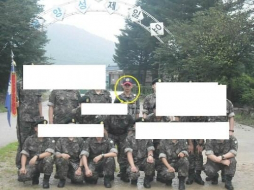 사진에는 유승호가 조교 모자를 쓰고 맨 뒷줄 중앙에 서서 동료들과 포즈를 취하고 있는 모습이 담겨 있다. 진지한 표정과 절도있는 포즈에서 강인한 군인의 포스가 느껴진다.