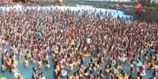 사진속의 장소는 중국 쓰촨성에 위치한 한 워터파크로 알려지고 있다. 29일 하루에만 1만 5000여명의 인파가 이곳에 몰린 것으로 전해졌다.