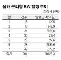 31일 금융감독원에 따르면 자본시장법 개정안이 국회에서 통과된 지난 4월 이후 이날까지 분리형 BW를 발행한 곳은 총 138개사다. 이 가운데 최대주주 및 특수관계인이 워런트를 매입한 곳은 71곳에 달한다.
