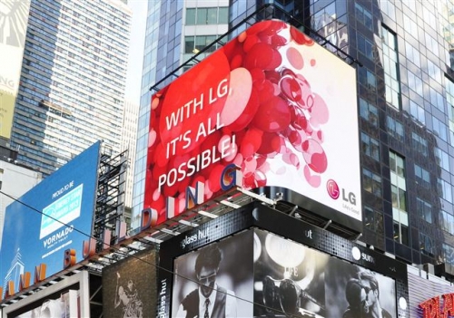 LG전자는 1일 ‘잇츠 올 파서블’ 테마와 ‘레드 서클’을 적용한 브랜드 광고 영상을 뉴욕 타임스퀘어 전광판에 상영해 글로벌 브랜드 마케팅 강화의 신호탄을 울렸다.