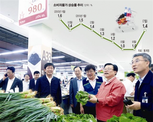 통계청이 1일 발표한 ‘7월 소비자물가 동향’에 따르면 지난달 소비자물가는 지난해 같은 달보다 1.4% 상승해 상승폭이 확대됐다. 올해 1월 1.4%에서 1.5%로 올라선 이후 6개월 만에 처음으로 오름세를 탄 것이다. 전월 대비로도 0.2% 올라 지난 2월 이후 처음으로 플러스(+)를 기록했다. 이는 전기·수도·가스가 전년 동월 대비 3.8% 크게 올랐고 공업제품과 농축수산물도 각각 1.4%와 0.4% 상승한 데 기인한 바 크다.