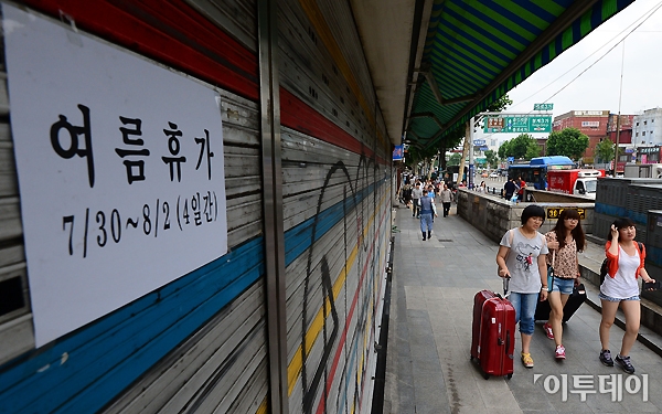 길었던 장마가 끝나고 본격적으로 여름휴가가 시작돼 도심 곳곳에는 휴가를 떠나 잠시 문을 닫은 상점을 쉽게 볼 수 있다. 1일 오후 서울 종로 일대 상점에 여름휴가를 알리는 안내문이 붙어 있다. 노진환 기자 myfixer@