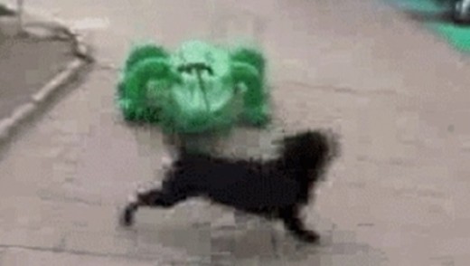 공개된 영상에는 자기 덩치보다 더 큰 녹색 인형 악어에 소스라치게 놀라는 검은 강아지의 모습이 담겨있다. 강아지는 악어 인형이 제 몸뚱아리에 묶여있는 줄도 모른 채 자지러질 듯 뛰어 웃음을 자아낸다.
