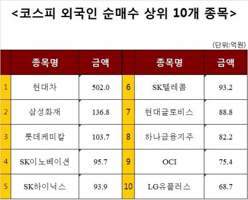 [코스피 외국인 순매수 상위 10개 종목]
