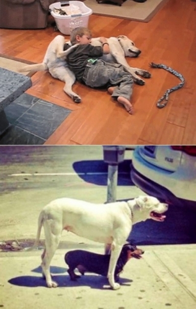 이어 공개 된 사진에는 작은 개가 큰 덩치를 가진 개의 몸 아래로 들어가 햇볕을 피해 그야말로 상부상조의 진수를 보여준다는 평가다.
