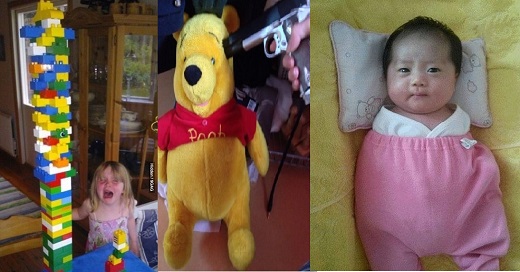 엄청난 높이의 블록 앞에서 눈물을 쏟고 있는 어린 아이, 곰돌이 푸 인형에 권총을 겨눈 모습, 갓난 아기의 팔을 바지 속에 쏙 넣어버린 모습 등이 공개됐다. 모두 조카와 노는 삼촌이 저지른 일들을 담은 장면들이다.