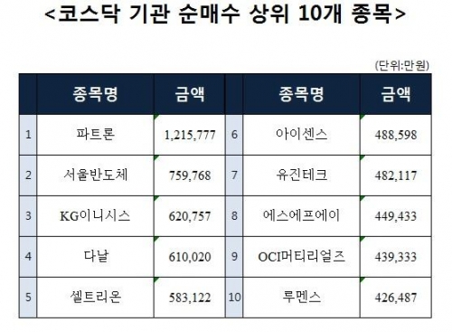 [주간 코스닥 기관 순매수 상위 10개 종목]