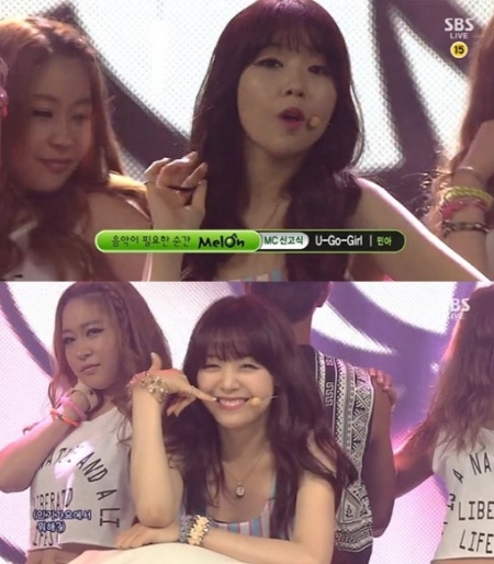 걸스데이 멤버 민아는 4일 방송된 SBS ‘인기가요’ 오프닝 무대에서 이효리의 ‘유고걸’을 선보이며 MC 신고식 무대를 가졌다.